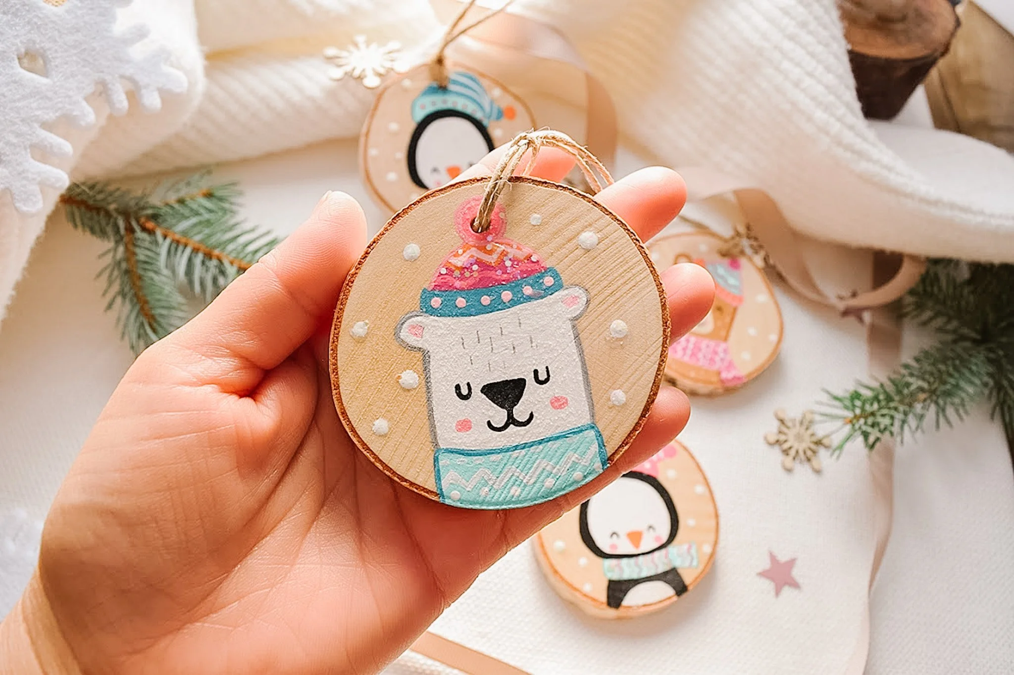 I launch a new collection of ornaments every year around Christmas time. They are totally handmade, handprinted and making them brings me so much joy!